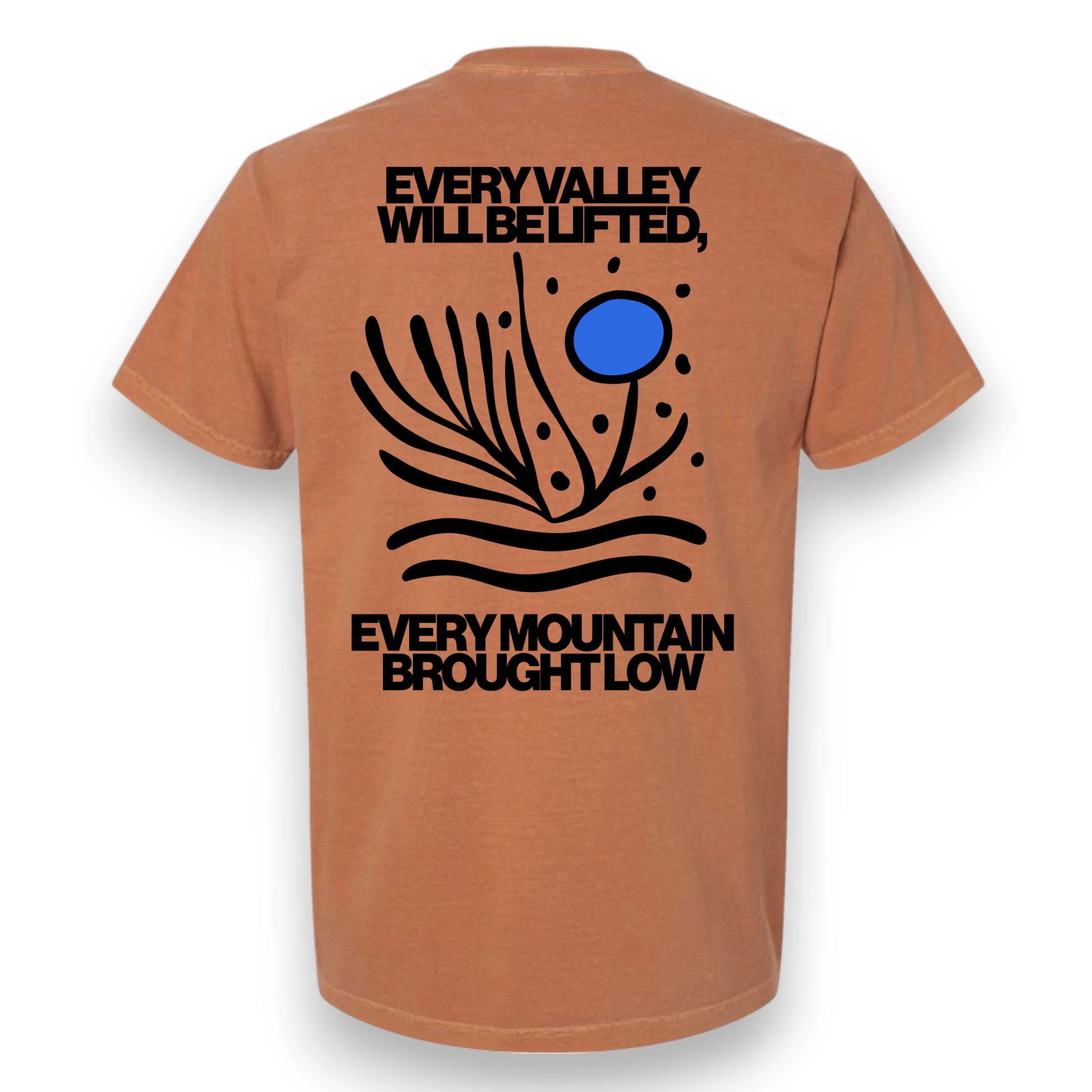 Back: "Every valley will be lifted, every mountain brought low"