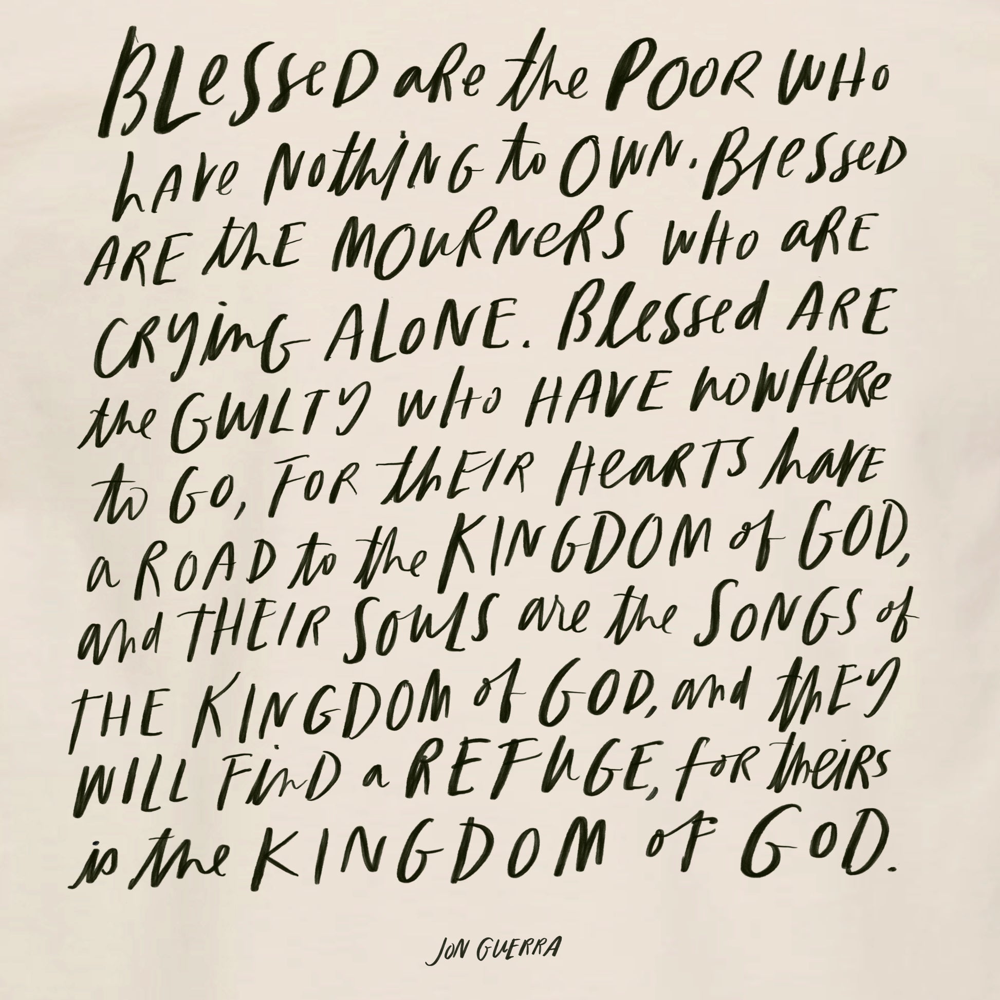 Ivory crewneck pullover with “Kingdom of God” lyrics hand-lettered by @alimakesthings.